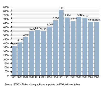 - ↑ (it) Popolazione residente e bilancio demografico sur le site de l'ISTAT.