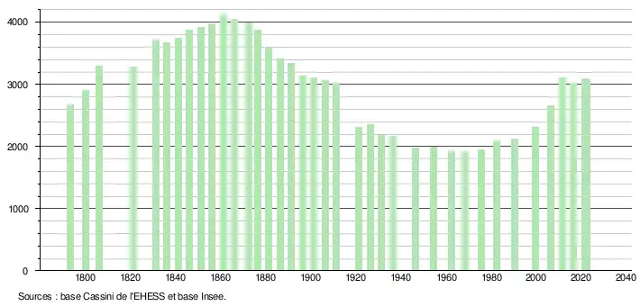 - ↑ Population municipale de référence en vigueur au 1er janvier 2025, millésimée 2022, définie dans les limites territoriales en vigueur au 1er janvier 2024, date de référence statistique : 1er janvier 2022.