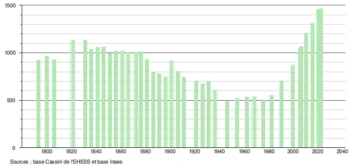 - ↑ Fiches Insee - Populations de référence de la commune pour les années 2006, 2007, 2008, 2009, 2010, 2011, 2012, 2013, 2014, 2015, 2016, 2017, 2018, 2019, 2020, 2021 et 2022.