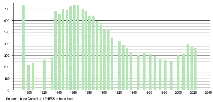 361 hab. (2022 en évolution de −6,72 % par rapport à 2016)