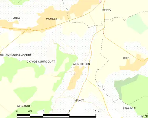 - ↑ « Orthodromie entre Monthelon et Chouilly », sur fr.distance.to (consulté le ).