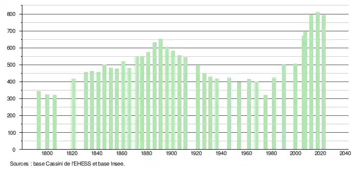 - ↑ Fiches Insee - Populations de référence de la commune pour les années 2006, 2007, 2008, 2009, 2010, 2011, 2012, 2013, 2014, 2015, 2016, 2017, 2018, 2019, 2020, 2021 et 2022.