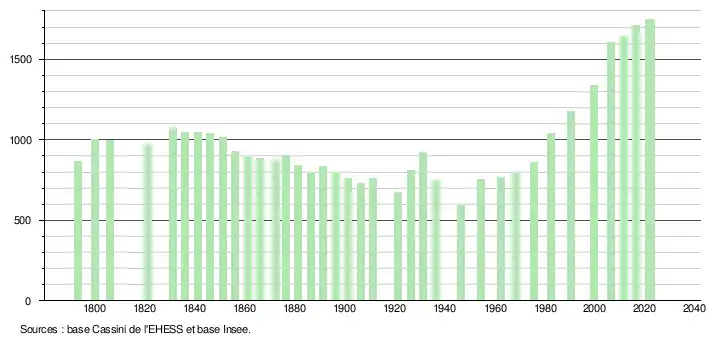 - ↑ Fiches Insee - Populations de référence de la commune pour les années 2006, 2007, 2008, 2009, 2010, 2011, 2012, 2013, 2014, 2015, 2016, 2017, 2018, 2019, 2020, 2021 et 2022.