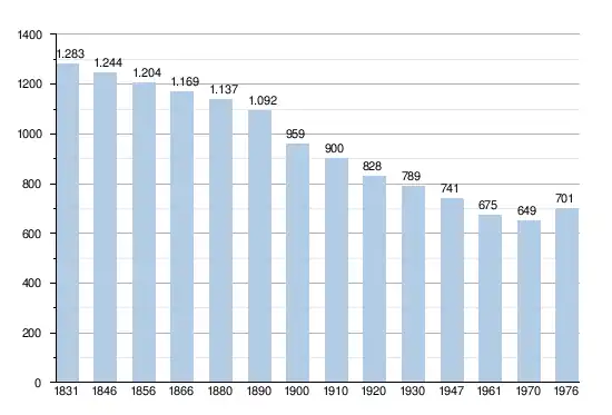 - Sources : INS, Rem. : 1831 jusqu'en 1970 = recensements, 1976 = nombre d'habitants au 31 décembre.