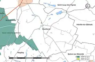 L’inventaire des zones naturelles d'intérêt écologique, faunistique et floristique (ZNIEFF) a pour objectif de réaliser une couverture des zones les plus intéressantes sur le plan écologique, essentiellement dans la perspective d’améliorer la connaissance du patrimoine naturel national et de fournir aux différents décideurs un outil d’aide à la prise en compte de l’environnement dans l’aménagement du territoire. Le territoire communal de Montliard comprend une ZNIEFF[INPN 1] de type 2[Note 2], dénommée « Massif forestier d'Orléans ». D'une superficie de 36 086 hectares, elle s'étend sur 37 communes, dont Montliard[DREAL 1]. Son altitude varie entre 126 et 174 m[INPN 2]. La forêt d'Orléans repose pour l'essentiel sur des terrains de nature comparable à celle des terrains de la Sologne (Burdigalien) épandus sur le coteau de Beauce. Les formations végétales sont donc plutôt acidoclines à acidiphiles avec des secteurs secs et d'autres très humides. L'intérêt dépasse les contours complexes du massif domanial et s'étend également aux lisières et enclaves privées qui le prolongent[INPN 3].