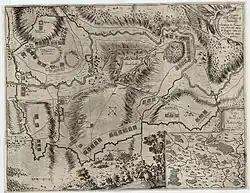 La ville, défendue par Jean V d'Allamont, investie en juin 1657, est prise, en présence du jeune Louis XIV et de Mazarin, en par Vauban[22], qui dirige là son premier siège[23].