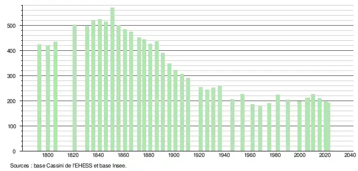 - ↑ Population municipale de référence en vigueur au 1er janvier 2025, millésimée 2022, définie dans les limites territoriales en vigueur au 1er janvier 2024, date de référence statistique : 1er janvier 2022.