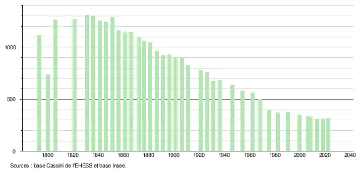 - ↑ Fiches Insee - Populations de référence de la commune pour les années 2006, 2007, 2008, 2009, 2010, 2011, 2012, 2013, 2014, 2015, 2016, 2017, 2018, 2019, 2020, 2021 et 2022.