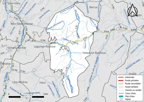 Les communes les plus proches[Note 2] sont[6] : Haux (3,3 km), Laguinge-Restoue (3,9 km), Tardets-Sorholus (4,2 km), Lichans-Sunhar (4,5 km), Lanne-en-Barétous (5,1 km), Alos-Sibas-Abense (5,3 km), Licq-Athérey (5,8 km), Trois-Villes (6,3 km).