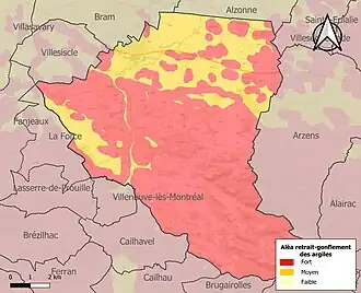 Le retrait-gonflement des sols argileux est susceptible d'engendrer des dommages importants aux bâtiments en cas d’alternance de périodes de sécheresse et de pluie. La totalité de la commune est en aléa moyen ou fort (75,2 % au niveau départemental et 48,5 % au niveau national). Sur les 1 075 bâtiments dénombrés sur la commune en 2019, 1075 sont en aléa moyen ou fort, soit 100 %, à comparer aux 94 % au niveau départemental et 54 % au niveau national. Une cartographie de l'exposition du territoire national au retrait gonflement des sols argileux est disponible sur le site du BRGM[26],[Carte 3].