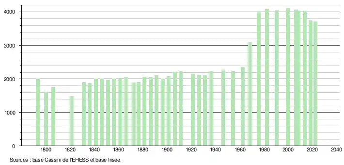 - ↑ Fiches Insee - Populations de référence de la commune pour les années 2006, 2007, 2008, 2009, 2010, 2011, 2012, 2013, 2014, 2015, 2016, 2017, 2018, 2019, 2020, 2021 et 2022.