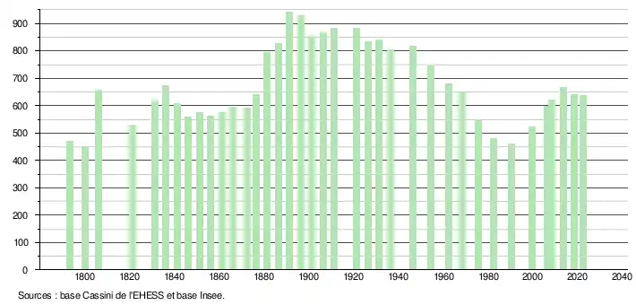 636 hab. (2022 en évolution de −3,93 % par rapport à 2016)