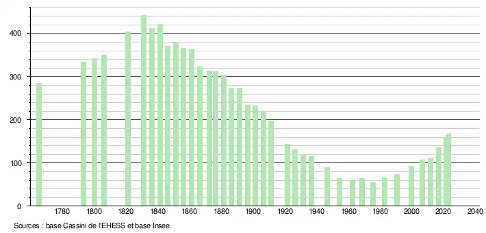 - ↑ Fiches Insee - Populations de référence de la commune pour les années 2006, 2007, 2008, 2009, 2010, 2011, 2012, 2013, 2014, 2015, 2016, 2017, 2018, 2019, 2020, 2021 et 2022.