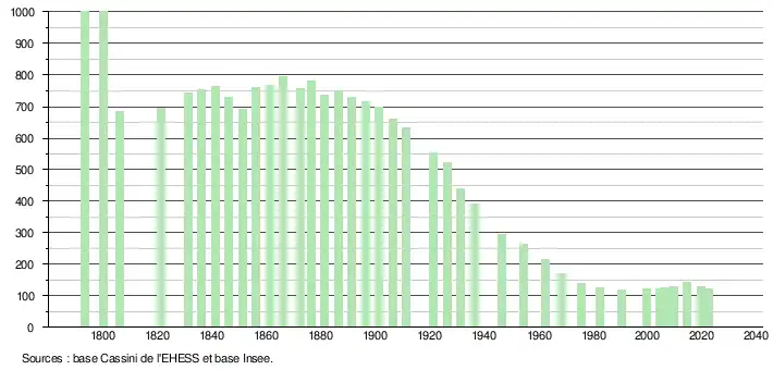 - ↑ Population municipale de référence en vigueur au 1er janvier 2025, millésimée 2022, définie dans les limites territoriales en vigueur au 1er janvier 2024, date de référence statistique : 1er janvier 2022.