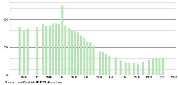 - ↑ Fiches Insee - Populations de référence de la commune pour les années 2006, 2007, 2008, 2009, 2010, 2011, 2012, 2013, 2014, 2015, 2016, 2017, 2018, 2019, 2020, 2021 et 2022.