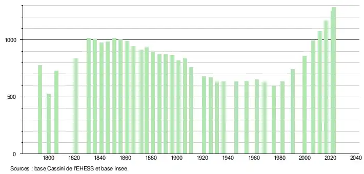 ↑ Population municipale de référence en vigueur au 1erjanvier2025, millésimée 2022, définie dans les limites territoriales en vigueur au 1erjanvier2024, date de référence statistique: 1erjanvier2022.