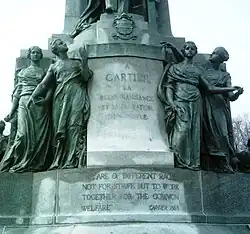 Le monument fut commandé pour célébrer le centième anniversaire de naissance de George-Étienne Cartier en 1914, mais sa construction dut être retardée vu le déclenchement de la Première Guerre mondiale. La cérémonie d'inauguration eut finalement lieu le . La structure fut dévoilée par le roi George V lui-même, à partir du château de Balmoral par la pression d’un bouton électrique.