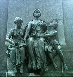 L'œuvre utilise un langage symbolique. Au sommet, la figure ailée, tenant une couronne de laurier, représente la Renommée.