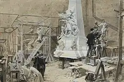 Les sculptures de Jean-Paul Aubé (1837-1916) sont installées sur une architecture de Louis-Charles Boileau (1837-1914). La maquette en plâtre au 1/90e (128 × 36 × 40,7 cm) du monument datant du concours de 1884 est conservée au musée d'Orsay[4],[5].