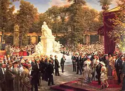 L'inauguration du monument le , événement en présence du prince impérial Eitel-Frédéric de Prusse, fait l'objet d'une commande de Ludwig Leichner au peintre d'histoire Anton von Werner pour une peinture à l'huile achevée en 1908. Au centre de l'image, le prince en uniforme de parade accueille Ludwig Leichner, accompagné à droite par Gustav Eberlein. Derrière eux, un groupe d'artistes berlinois, dont le sculpteur Peter Breuer (de), l'architecte Hermann Ende et le peintre Ludwig Knaus. En bas à gauche du tableau, le peintre représente la scène. Son profil tourné vers la gauche est clairement visible au milieu d'un groupe. Le peintre Adolph Menzel prononce l'un des discours de cérémonie.