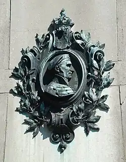 Le piédestal est orné d'un médaillon en bronze figurant le portrait du duc de Brunswick, entouré de feuilles de laurier.