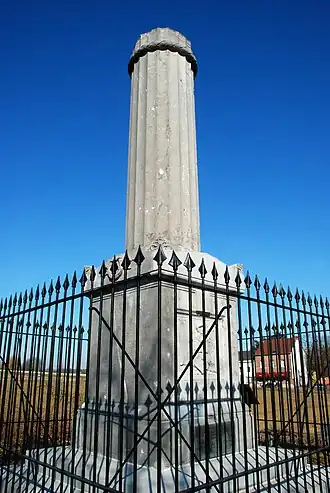 - ↑ Hommage gravé dans la pierre sur le socle du monument.