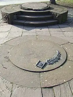 La plaque est encerclée par des pierres de grès rouge. La couleur du grès et les fragments de brique qui y sont disséminés symbolisent le sang versé lors des combats.