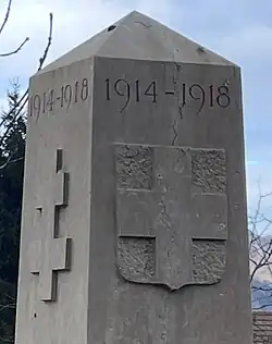 La stèle comporte les ornements de La Croix de Savoie[1] sur trois côtés et sur la quatrième face figure l'écusson de La Croix de Lorraine[2].