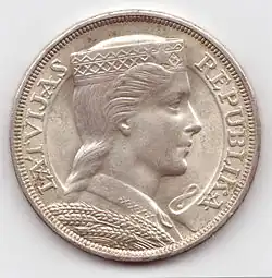 La statue au sommet du Monument de la Liberté devait orner la pièce lettone de deux euros au moment où la Lettonie envisageait d'adopter comme monnaie officielle dès le . La Lettonie a adopté l'euro au malgré la crise de la dette dans la zone euro.