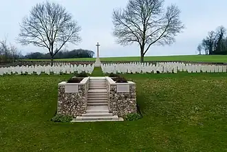 Le monument est classé au titre des monuments historiques en 1922[1]. Monument érigé par les pionniers de la 17e DI française en hommage à la 15e Division écossaise. Monument déplacé d'un champ agricole proche et sauvegardé dans l'enceinte du cimetière britannique[2].
