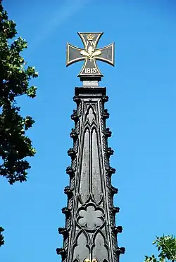 Le monument est constitué d'un socle et d'un piédestal en pierre bleue portant une flèche de style néogothique surmontée d'une croix représentant la décoration de la Croix de fer instituée en 1813 par le roi Frédéric-Guillaume III de Prusse[3],[4].