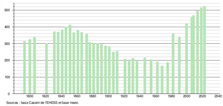- ↑ Fiches Insee - Populations de référence de la commune pour les années 2006, 2007, 2008, 2009, 2010, 2011, 2012, 2013, 2014, 2015, 2016, 2017, 2018, 2019, 2020, 2021 et 2022.