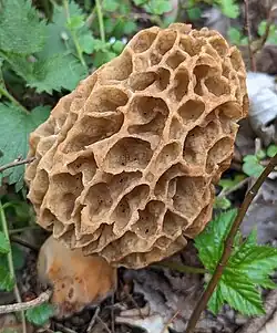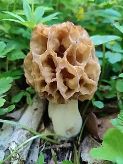 - Morchella vulgaris, qui reste longtemps grise avant de devenir jaunâtre, a des alvéoles labyrinthiques étirés et verruqueux, une odeur forte à maturité et un pied élargi à la base et nettement sillonné.