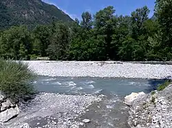 Le Morel à Aigueblanche. Partie aménagée en aval de la cascade du Morel, en octobre 2011. | |