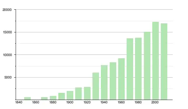 | 1930 | 6 001 | ▲ +109,31 % | |