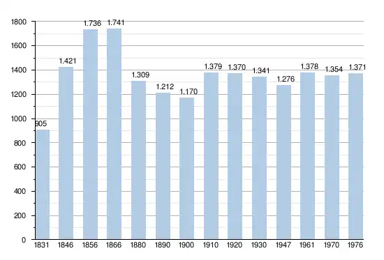Source: DGS, 1831 à 1970=recensements population, 1976= habitants au 31 décembre