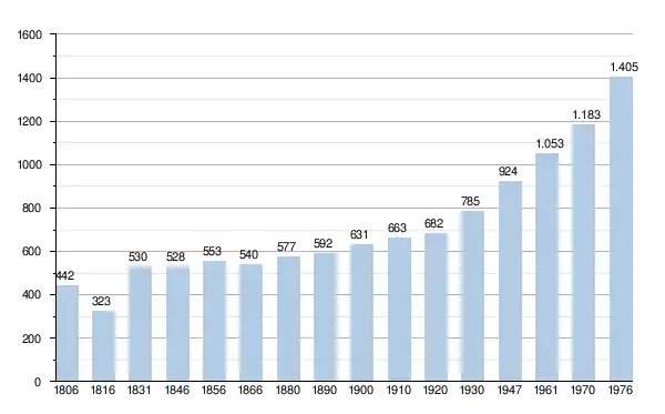 - Sources : INS, Rem. : 1831 jusqu'en 1970 = recensements, 1976 = nombre d'habitants au 31 décembre[2].