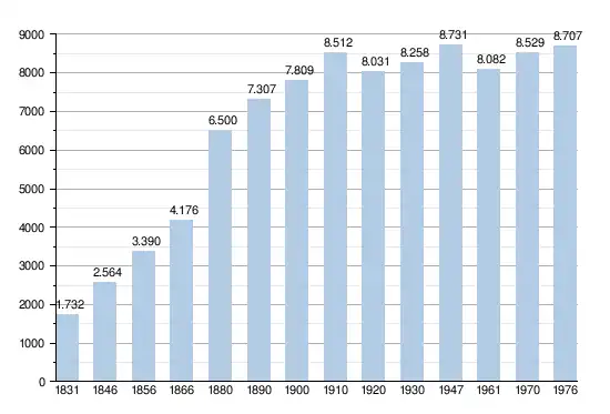Sources: NIS, Remarque: 1831 à 1970 = recensements, 1976 = nombre d'habitants au 31 décembre