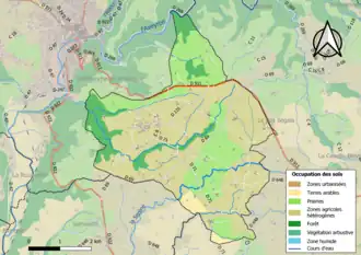 L'occupation des sols de la commune, telle qu'elle ressort de la base de données européenne d’occupation biophysique des sols Corine Land Cover (CLC), est marquée par l'importance des territoires agricoles (87,2 % en 2018), en diminution par rapport à 1990 (89,2 %). La répartition détaillée en 2018 est la suivante : zones agricoles hétérogènes (56 %), prairies (29,2 %), forêts (10,7 %), zones urbanisées (2,1 %), terres arables (2,1 %)[20].