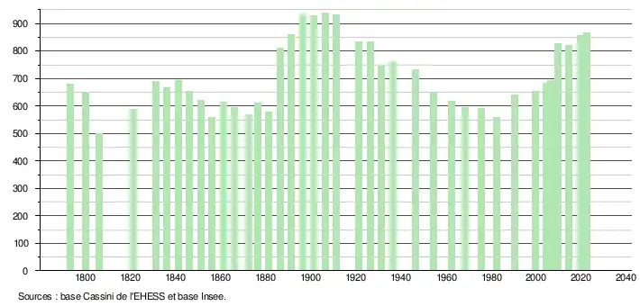 - ↑ Population municipale de référence en vigueur au 1er janvier 2025, millésimée 2022, définie dans les limites territoriales en vigueur au 1er janvier 2024, date de référence statistique : 1er janvier 2022.