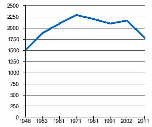 En 2011, l'âge moyen de la population était de 43,2 ans, 41,9 ans pour les hommes et 44,4 ans pour les femmes[6].