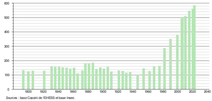 - ↑ Population municipale de référence en vigueur au 1er janvier 2025, millésimée 2022, définie dans les limites territoriales en vigueur au 1er janvier 2024, date de référence statistique : 1er janvier 2022.