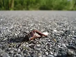 Les insectes morts ou agonisants les plus facilement retrouvés sur les bords de route sont les papillons et, dans les zones humides, les libellules, car ils sont de plus grande taille, colorés et facilement visibles. Ils sont aussi plus « lourds » (ce qui les fait retomber sur la chaussée ou le bas-côté), mais un nombre bien plus grand de petits insectes restent collés aux véhicules ou sont emportés par le vent et les turbulences sur les bas-côtés[14].