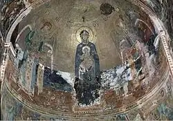 Le déclin de l’empire au XVe siècle se traduisit par l’abandon de l’art de la mosaïque devenu trop onéreux. Dès lors et après la conquête turque, les églises furent plutôt décorées de peintures murales ou de fresques.