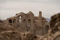 Le temple du feu sassanide se composait d'une vaste cour, au centre de laquelle se trouvait l'autel surmonté de la coupole du tchahartagh. Les Iraniens pour construire leurs mosquées conservèrent la vaste cour rectangulaire, en s'efforçant d'en faire coïncider l'axe principal avec la qibla, c'est-à-dire la direction de La Mecque[1]. Le tchahartagh est repoussé contre le mur sud de la grande cour, le mur qibla et l'autel du feu est remplacé par un mihrab. L'édifice est largement ouvert de trois côtés. Il est possible que ce type de mosquée-kiosque ait possédé un minaret près de la porte d'entrée. La mosquée Djuma d'Ardestan est un exemple de mosquée-kiosque, devenue plus tard mosquée à 4 iwans, cité par André Godard [1].
