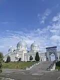 Le bâtiment principal a la forme d'un cube, recouvert des dômes appuyés sur des tambours relativement bas. La bordure des arcs et des niches près de l'entrée est arquée, de forme plutôt gothique qu'asiatique. La disposition de la mosquée est rectangulaire[3].