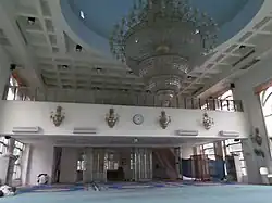 Le rez-de-chaussée comprend des dortoirs masculins et féminins, une salle de prière pour femmes et un centre d'activités pour femmes. Le deuxième étage comporte la grande salle de prière, un centre d'étude de la langue arabe ainsi qu'une salle d'exposition culturelle. Le troisième étage est composé d'une salle des invités, d'un centre d'activités jeunesse, de bureaux et d'une cuisine. La mosquée possède également un bureau pour l'imam, un bureau d'administration, une bibliothèque et un compartiment dédié aux ablutions[7],[11].