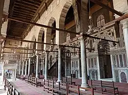 Les colonnes de marbre sont de style préislamiques et sont de tailles et de formes diverses, provenant d'anciens bâtiments du Caire et environnants.
