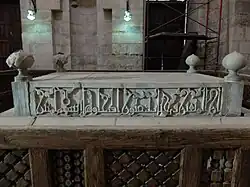 A l'intérieur des minarets se trouvent des cartouches sculptés signés et datés par l'architecte. C'est particulièrement rare ; il est peu commun qu'un architecte laisse son empreinte sur un bâtiment à cette époque[2]. Le minaret oriental indique que la « ma'dhana » (ou minaret) a été construite par Muhammad Ibn al-Qazzaz et achevée en août 1419.