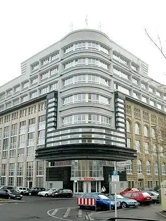 Dans le bâtiment « Mosse » originel se trouvaient les bureaux et l'imprimerie du journal progressiste Berliner Tageblatt détenu par Rudolf Mosse. Le bâtiment de 1901 dessiné par Cremer & Wolffenstein avec ses façades en grès fut gravement endommagé par la révolte des Spartakistes en 1919 — pris par les insurgés, il fut assiégé par les forces gouvernementales.